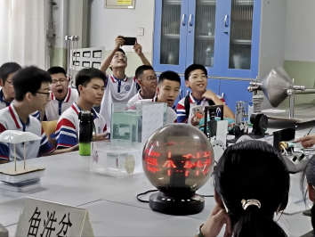 访学团一行抵达校园后,物理学院师生代表热情引导,带领学生们开启了充实的访学之旅。先是参观了物理演示实验室,实验室向访学团展示了声学、力学、电磁学等基本原理的实际应用,指导学生们体验了鱼洗盆、锥体上滚、变音钟、牛顿摆、陀螺仪等仪器设备。接着到了几何光学实验室,实验室演示了小孔成像、光的折射、反射、衍射等奇妙现象。还参观了激光技术实验室,实验室向访学团演示了高精度实验。最后参观了扫描电镜实验室,实验室向访学团展示了电子显微镜下的微观世界。整个访学过程学生们紧紧围绕在旁,并主动参与、亲身体验。活动结束后,同学们纷纷表示收获颇丰,更加深入地了解了物理学的奥秘和科学研究的魅力。