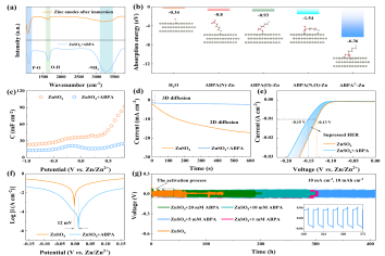 图1. ABPA在锌金属负极界面吸附行为以及抗腐蚀行为                图2. Zn2+-ABPA在锌金属负极分解为有机/无机复合SEI层