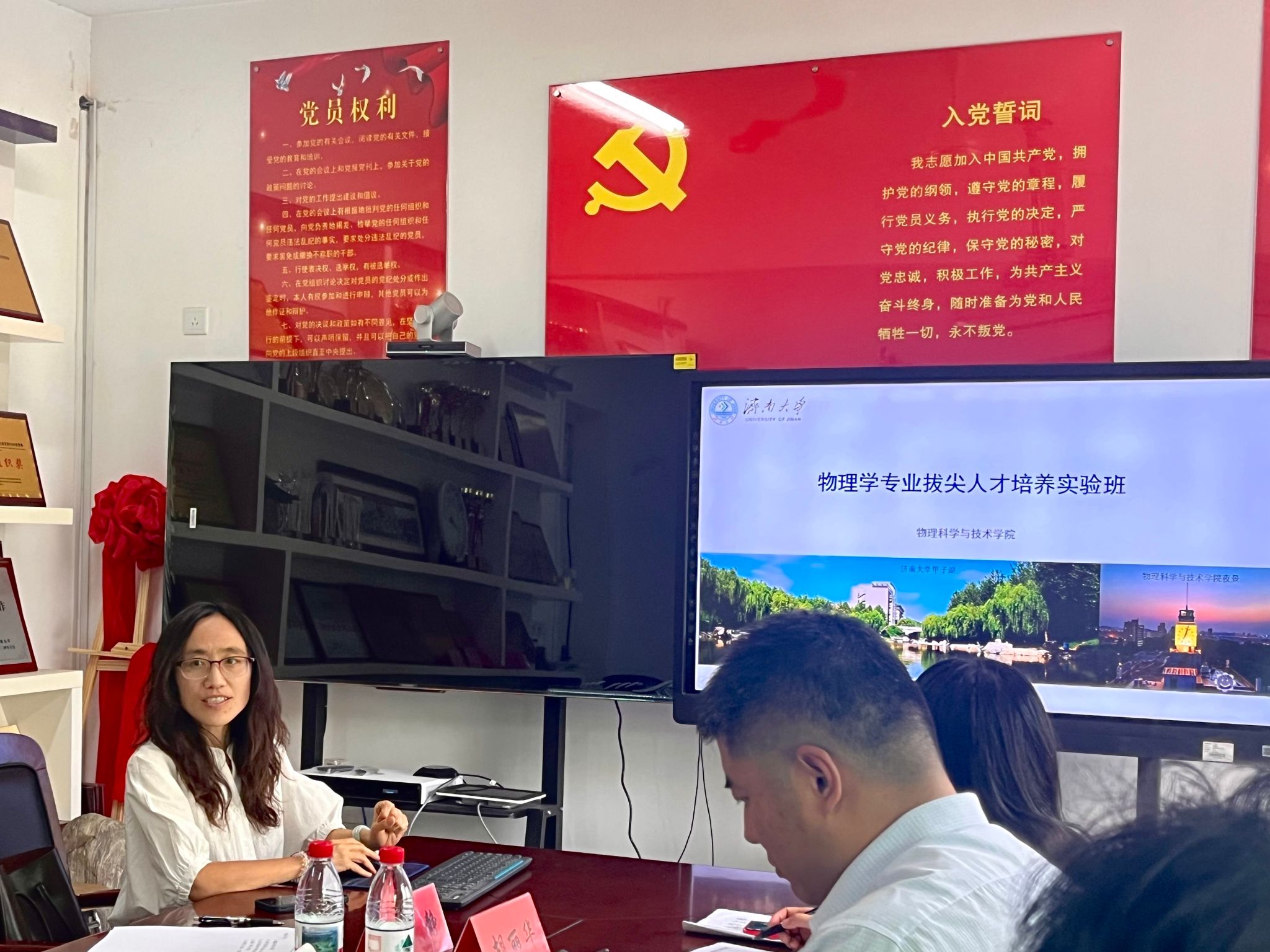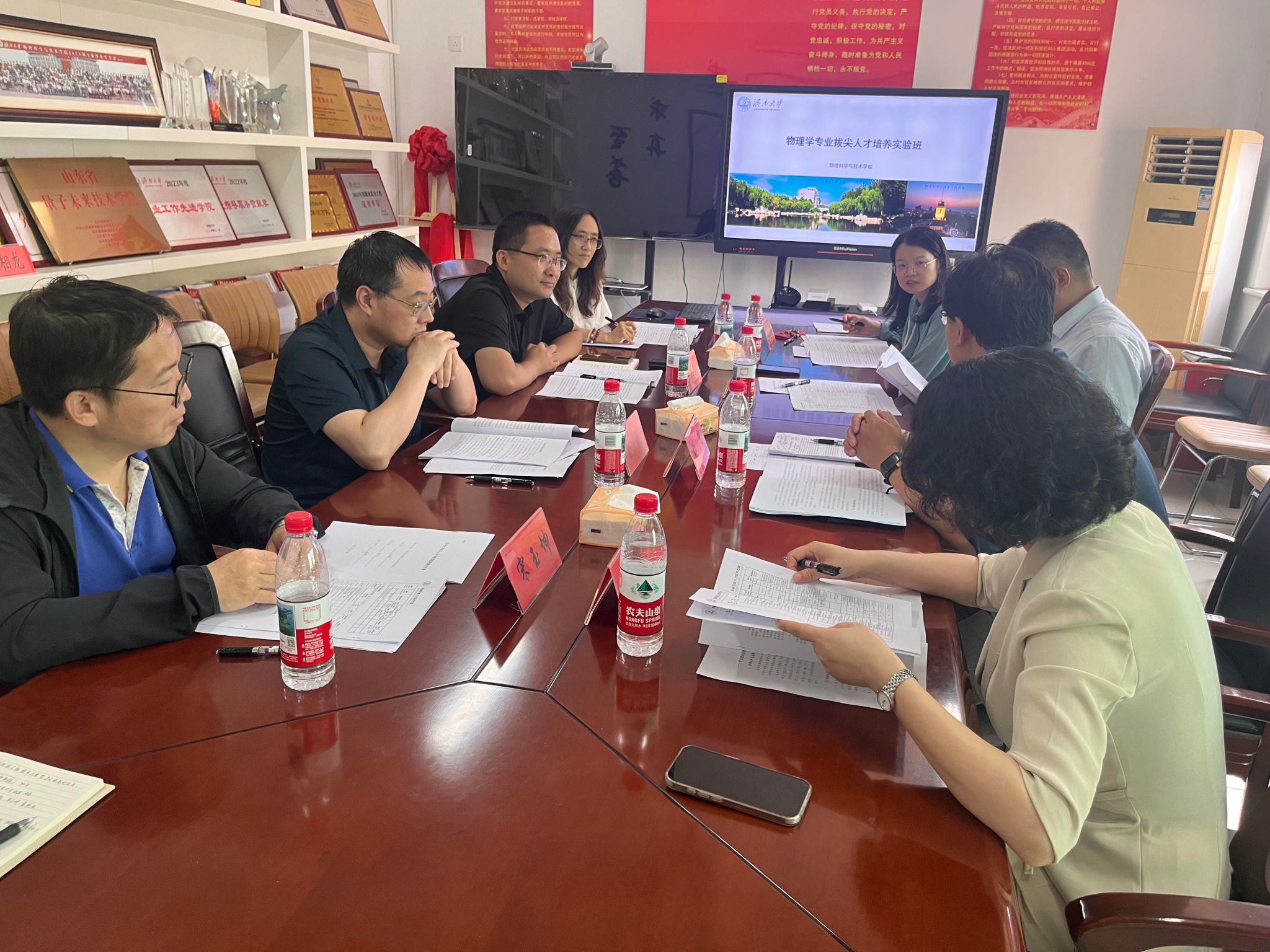 会上,物理系主任王静从建设背景、培养目标、课程体系、特色机制四个方面汇报方案。物理拔尖班以培养未来物理学家为核心目标,构建“123456”总体框架,即一目标、两路径、三拔尖、四创新、五措施、六保障,新增《新生研讨课》、《量子信息导论》课程,增加实践教学占比,强化科研训练和学科竞赛,在推免与奖学金、导师制与动态管理方面推行特色机制,确保培养质量。
