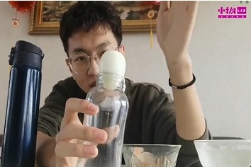 活动发起后,物院学子纷纷踊跃参与,希望为孩子们普及科学知识尽一份力。实验过程中用到了杯子、热水、鸡蛋等,瓶吞鸡蛋小实验是利用了压强这个知识点,由于热水使瓶内温度升高部分气体跑出瓶子,使得瓶内压强小于瓶外压强,所以瓶子把鸡蛋吞了进去。尽管部分同学在实验过程中出现了问题,但都在屡试屡验后成功完成了任务。志愿者们将提前录好的实验课堂的视频,实验课堂的文稿发送给山东省少儿图书馆的老师,小物实验课堂将在山东省少儿图书馆的微信公众号上推出,给孩子们普及物理小知识。这次线上实验活动增强了同学们的实践能力,更为索然无味的疫情生活增添了许多色彩。