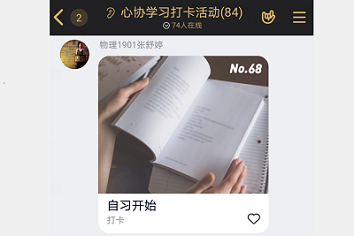 因为还未消除疫情的威胁,学生们无法回到自己熟悉的校园,无法与自己的好友如期在校园相见,但这并不能影响我们的学习。网课也就成为了当下学习的主要方法,可在网课中,老师与学生毕竟隔着一块屏幕,老师无法感受到学生是否认真在上课,也无法与学生进行及时的交流,所以学生的学习效率肯定比不上在学校的时候。此次“一个人的自习室”线上活动就通过交流群内每天打卡的方式监督着学生每天的学习,并有优秀的学长学姐分享自己的学习经验。在活动中,学生们在群里积极交流,分享自己的学习经历,主动向学长学姐请教学习方法,与同学们交换学习笔记。