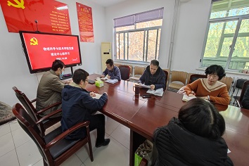 1123日,按照学校党史学习教育安排,物理学院党委理论学习中心组进行集体学习,共同学习党的十九届六中全会精神,开展“统一思想、凝聚共识、坚定信心、增强斗志”专题研讨。学院班子成员、各党支部书记参加,学院党委书记郑爱华主持会议。